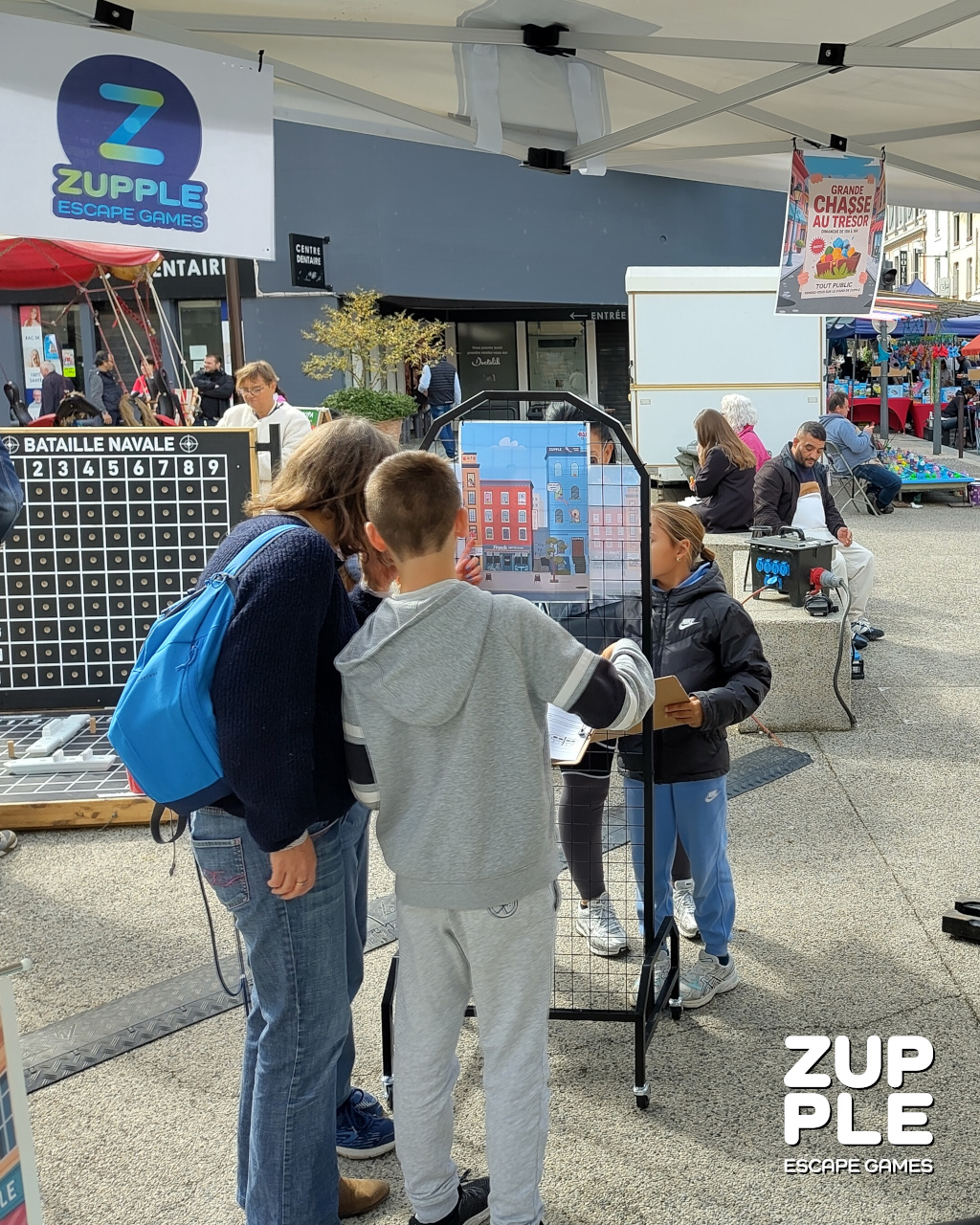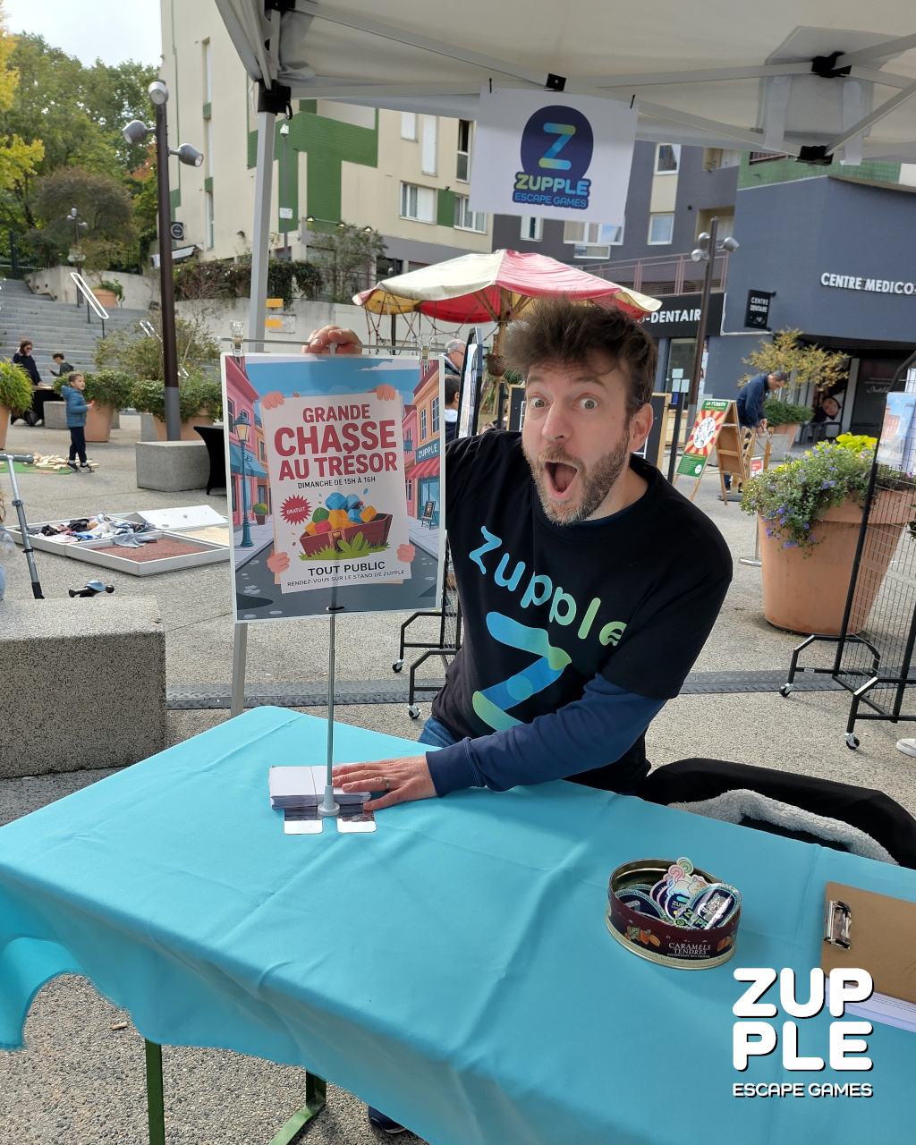 On a compté presque 100 groupes, familles ou ami·e·s, qui se sont arrêtés pour découvrir notre bar à énigmes. Voici quelques photos de la braderie, du stand de Zupple, et de cette animation :