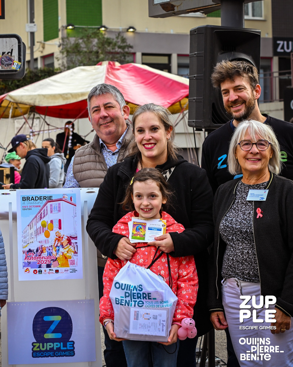 Il y avait environ 40 personnes au rendez-vous le dimanche pour essayer de trouver le trésor de la braderie. Il aura fallu moins de 20 minutes à une petite famille oullinoise pour s’en emparer. Elle a remporté plus de 360 € de cadeaux : 2 places pour Walibi, 10 places de cinéma au CGR de Brignais, des places de théâtre, des jeux de piste Zupple, des mugs de la ville, etc. La remise des lots s’est faite en présence des élu·e·s de la ville et de l’association des commerçants.