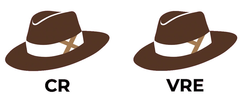 Le 2e chapeau partage le même défaut que le 1er, il possède un bandeau un peu trop large. En regardant les lettres en commun entre ces deux chapeaux on peut identifier la lettre correspondant à ce défaut, il s’agit du « R ». On peut donc l’éliminer des 2 premiers chapeaux. Le message commence donc par « C ». La 2e lettre sera soit « V » soit « E ». En identifiant un autre défaut sur ce chapeau, on pourra identifier le 3e chapeau.
